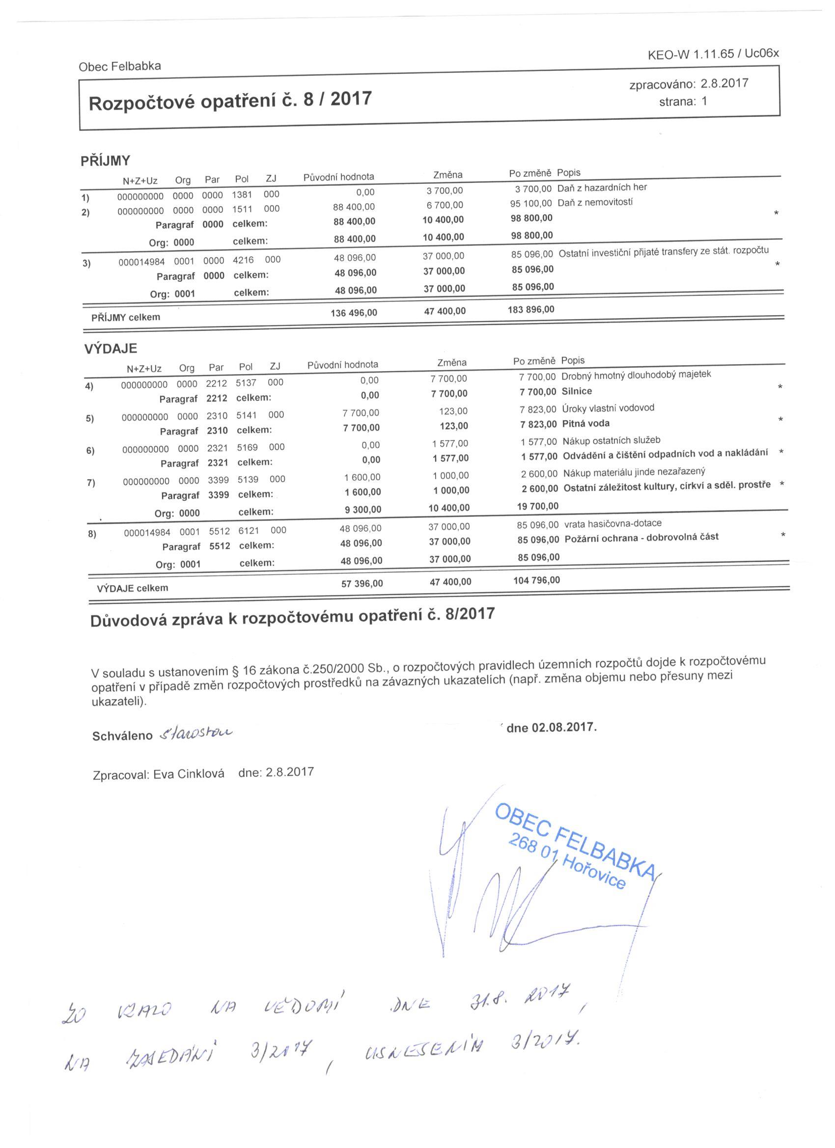 Rozpočtová opatření 2017