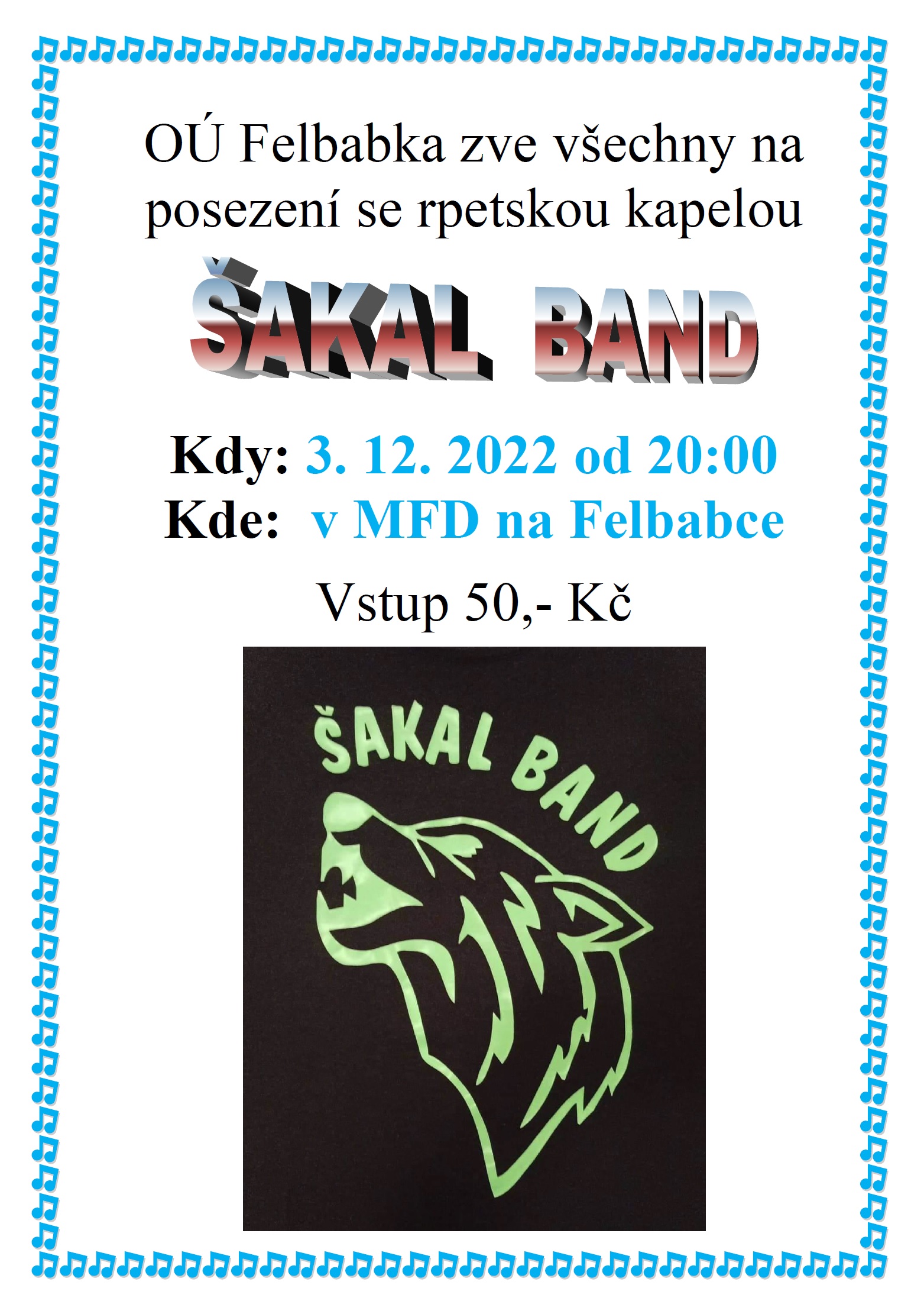 Pozvánka na posezení s kapelou ŠAKAL BAND